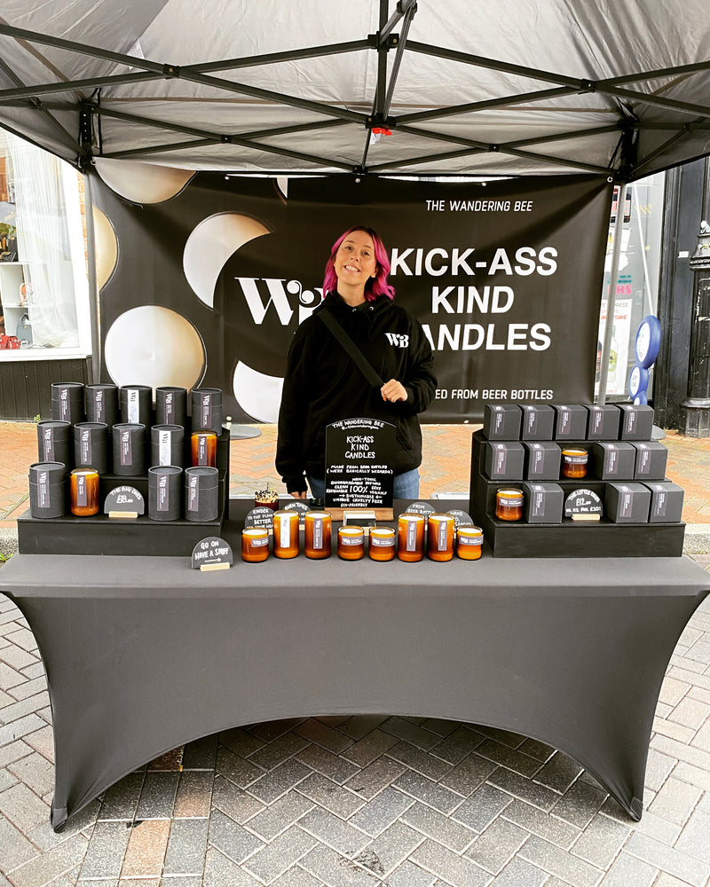 The Wandering Bee creates kick-ass kind candles handcrafted from beer bottles that are kinder to the planet, better for your health, and made to elevate your space rather than overpower it. We’re a family-run business based in Staffordshire, and we’ve been pouring candles and chasing dreams since early 2021.
